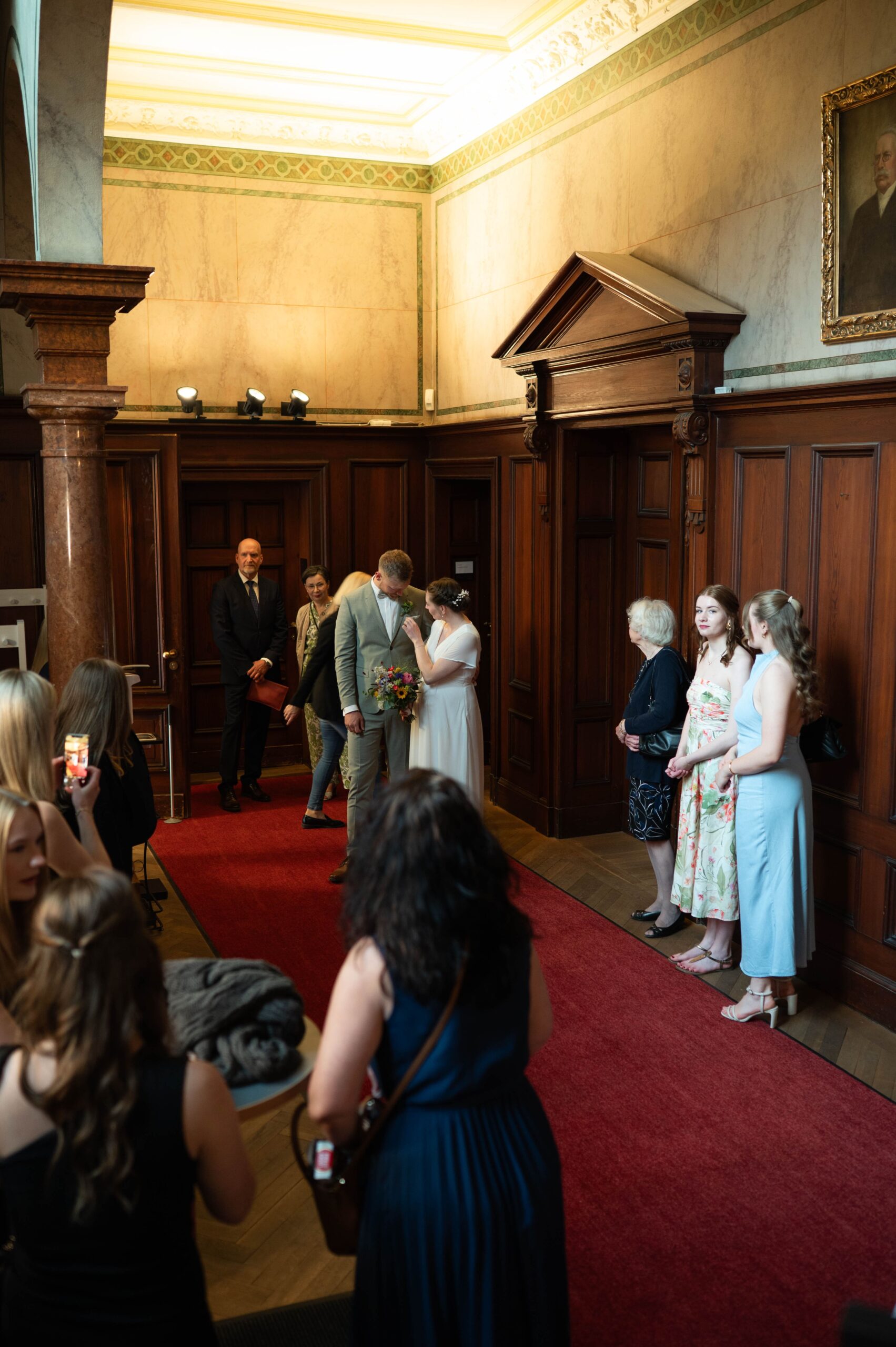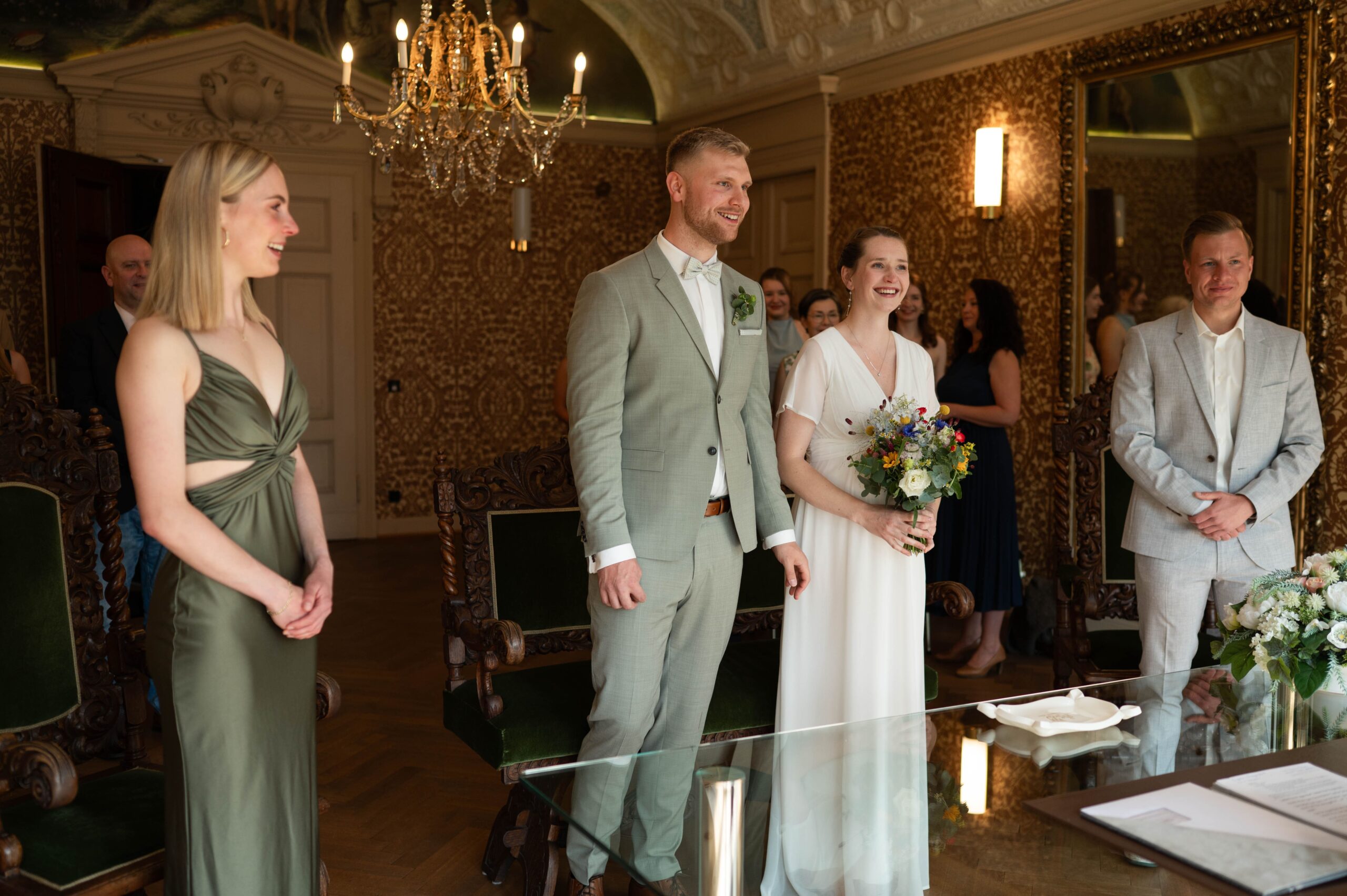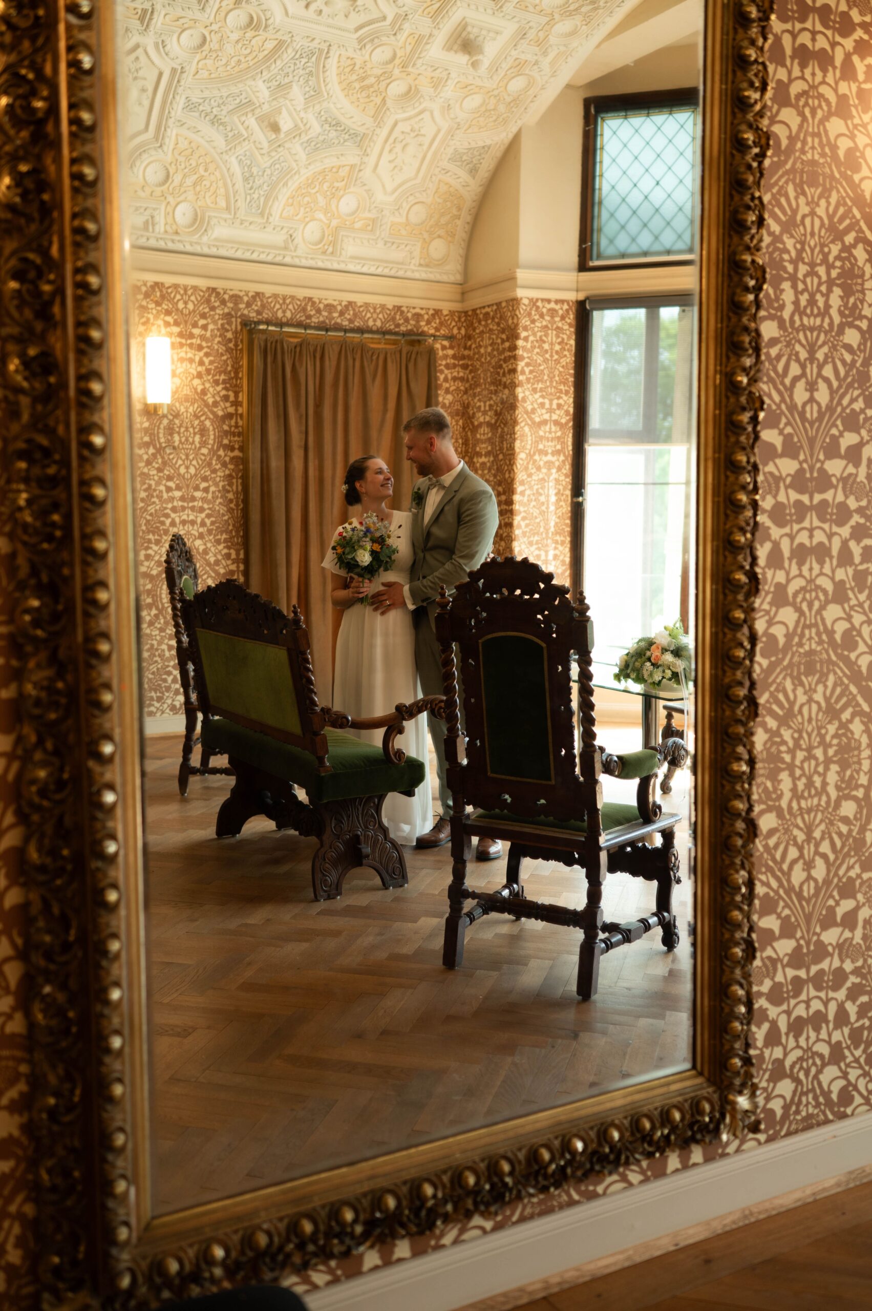 Es war ein so schöner vorsommerlicher Tag. Ich habe mich vorab mit der Braut getroffen und sie beim Ankommen begleitet. Auf dem Weg zum Standesamt in der Seeliger Villa. Die Räumlichkeiten im Standesamt waren so unglaublich schön.
