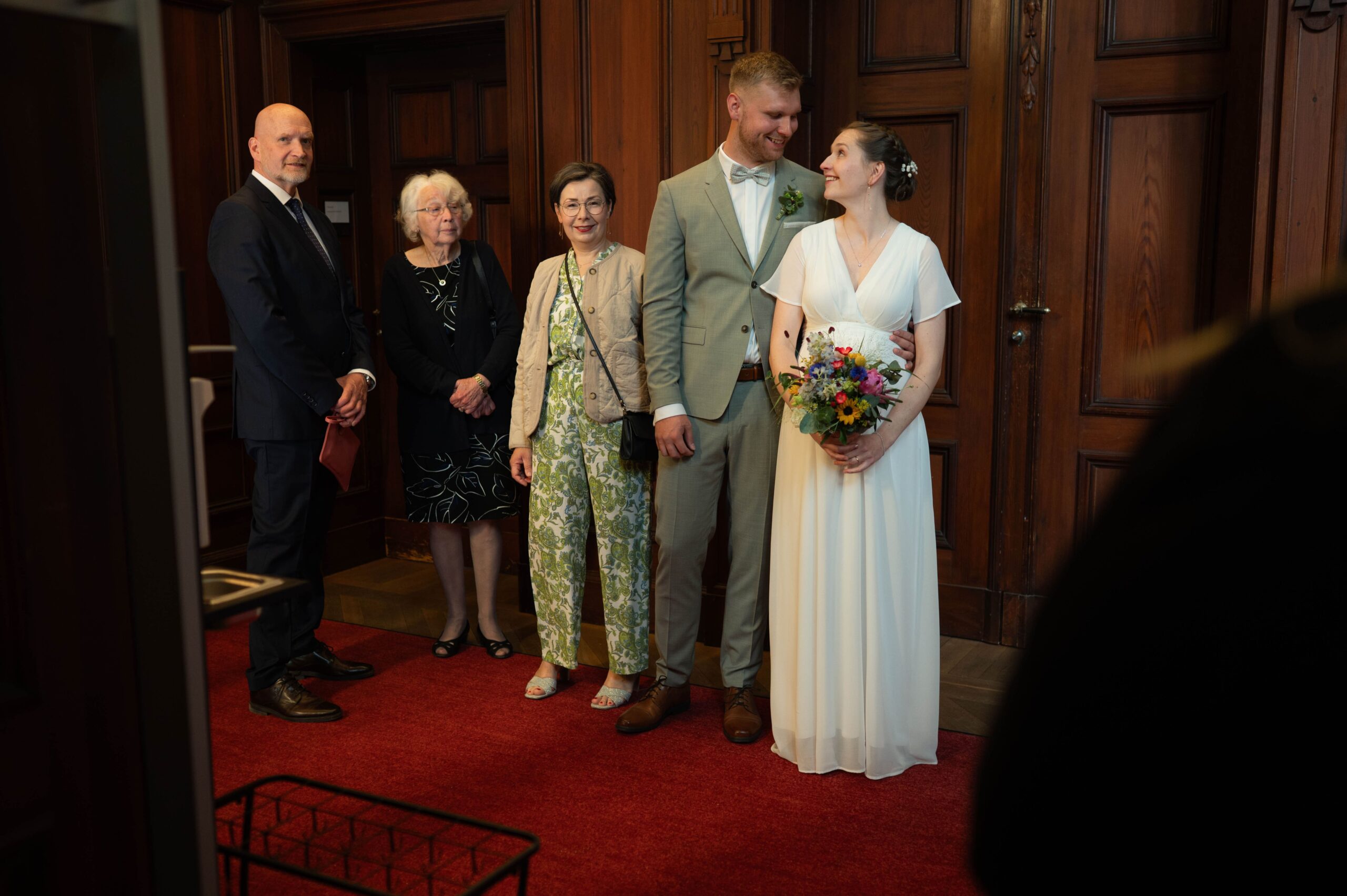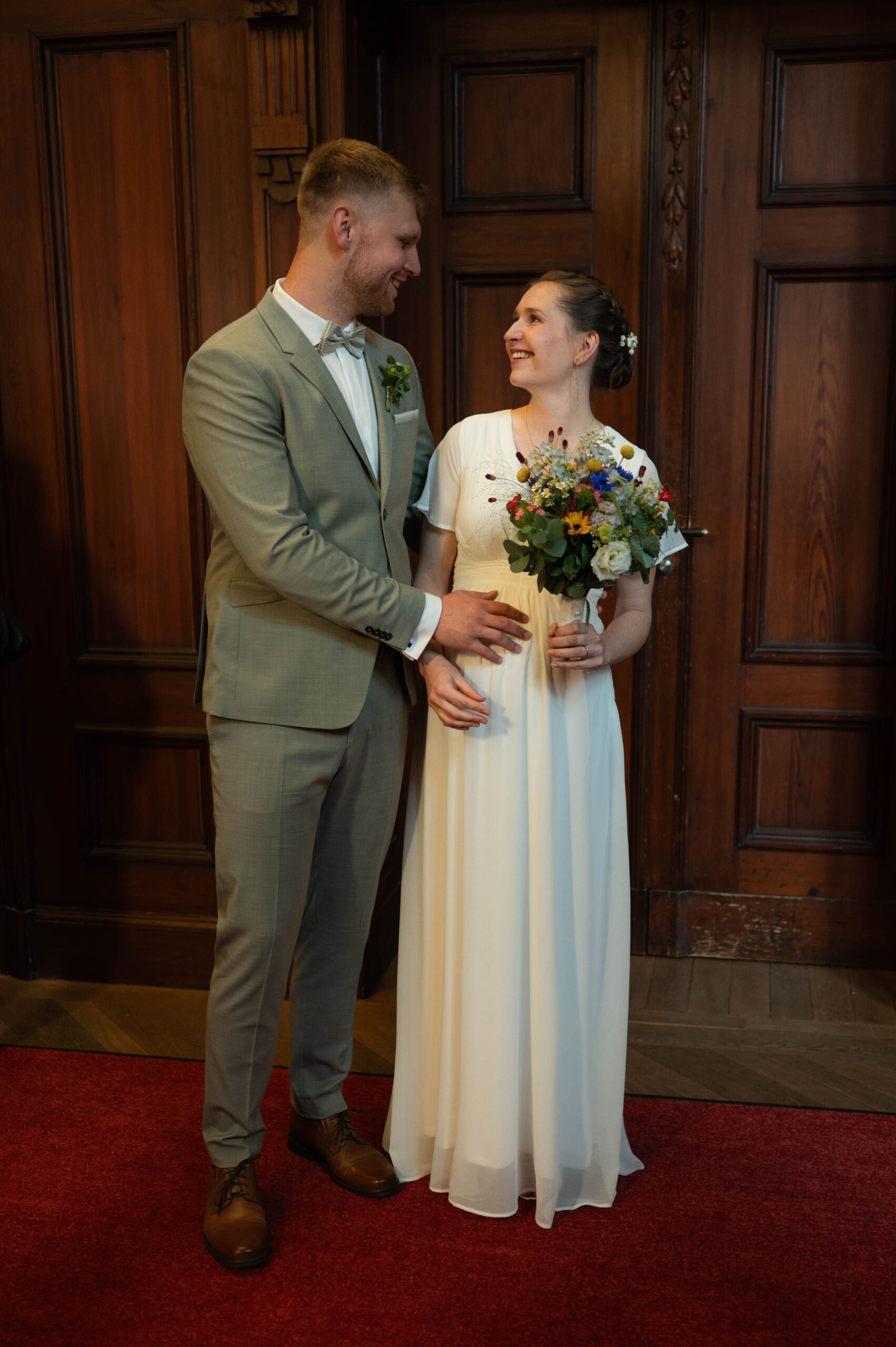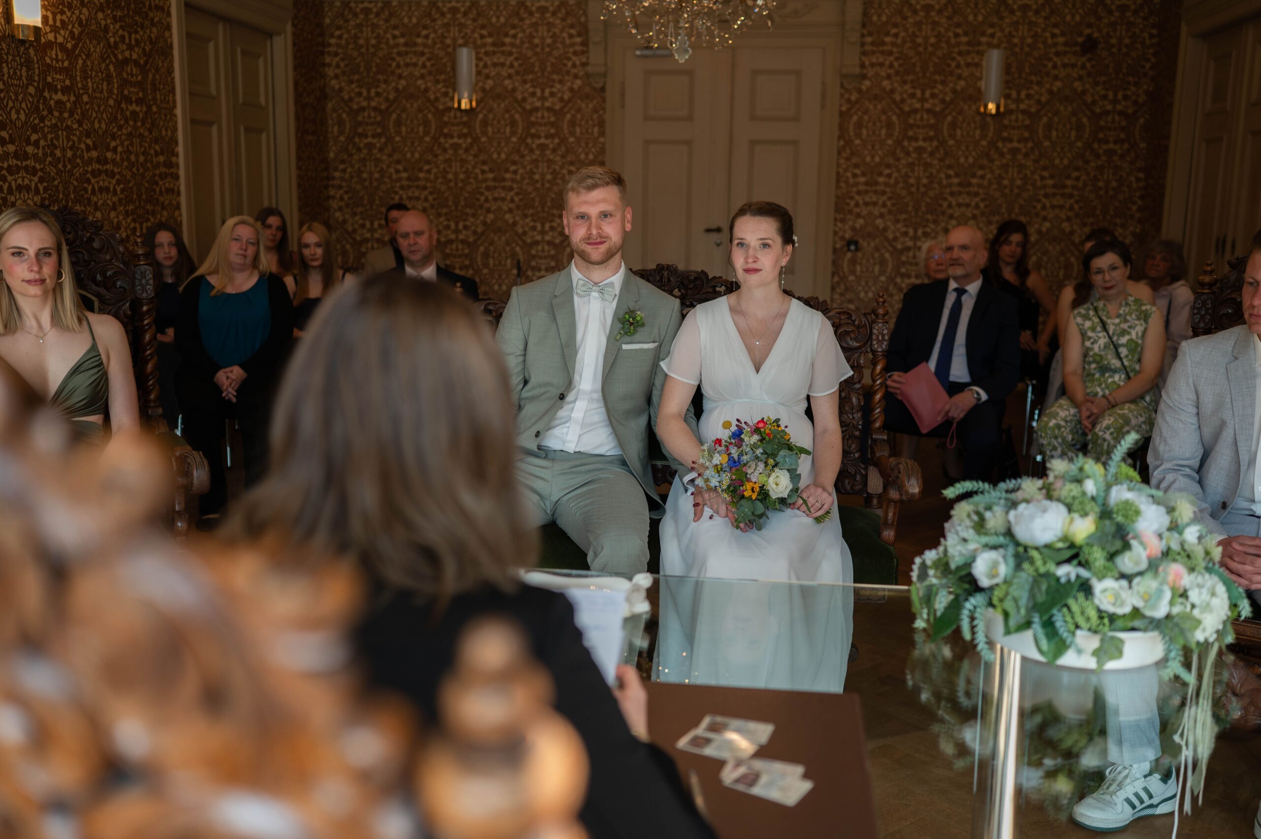 Es war ein so schöner vorsommerlicher Tag. Ich habe mich vorab mit der Braut getroffen und sie beim Ankommen begleitet. Auf dem Weg zum Standesamt in der Seeliger Villa. Die Räumlichkeiten im Standesamt waren so unglaublich schön.