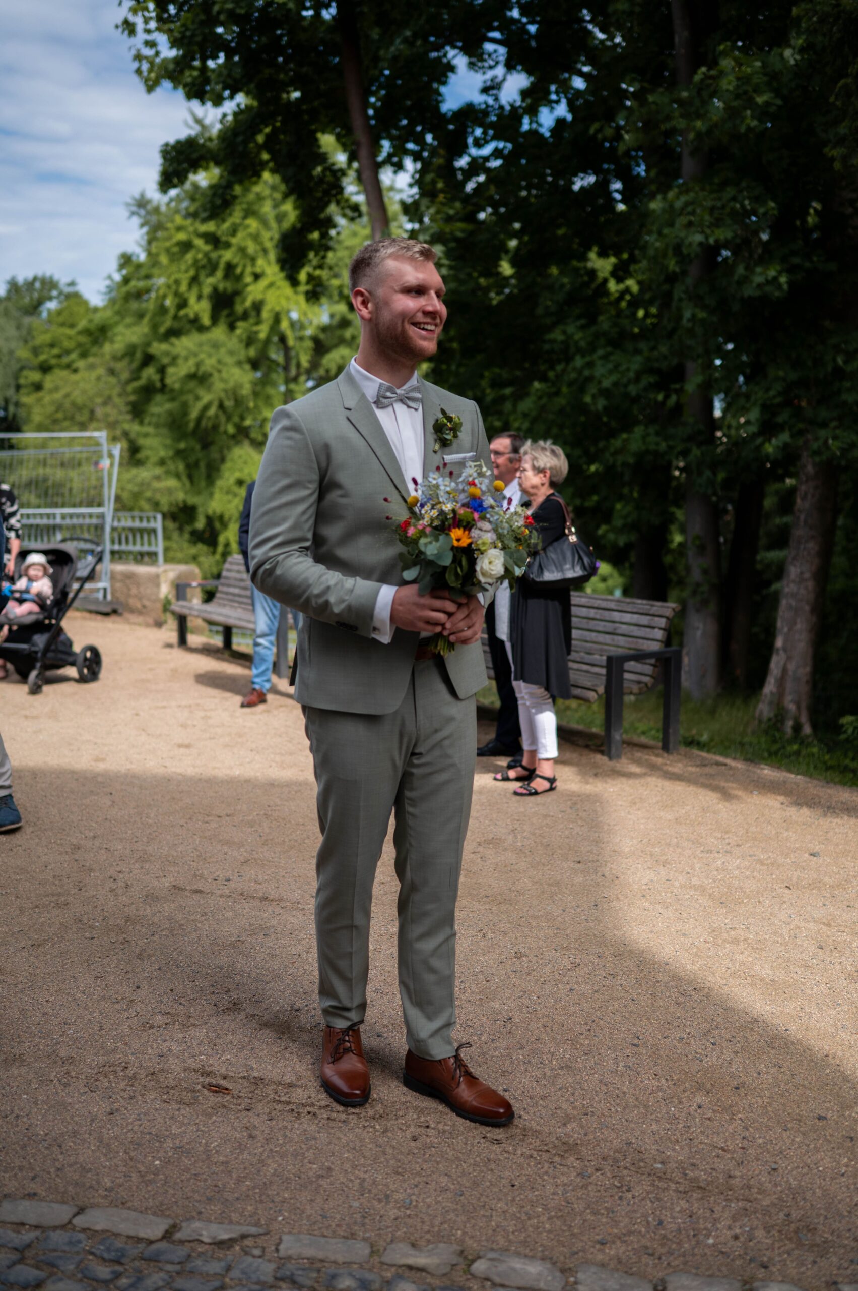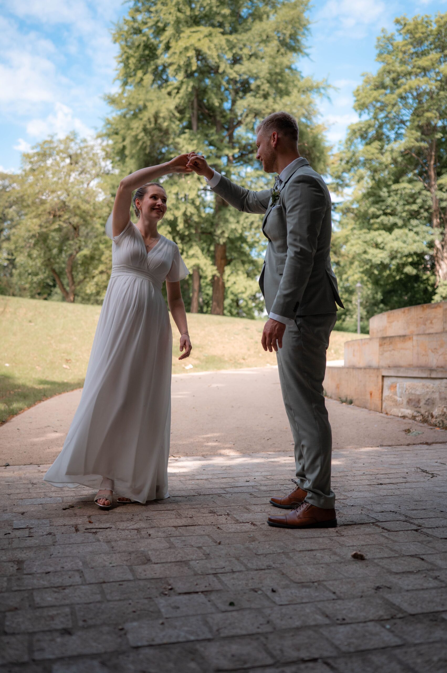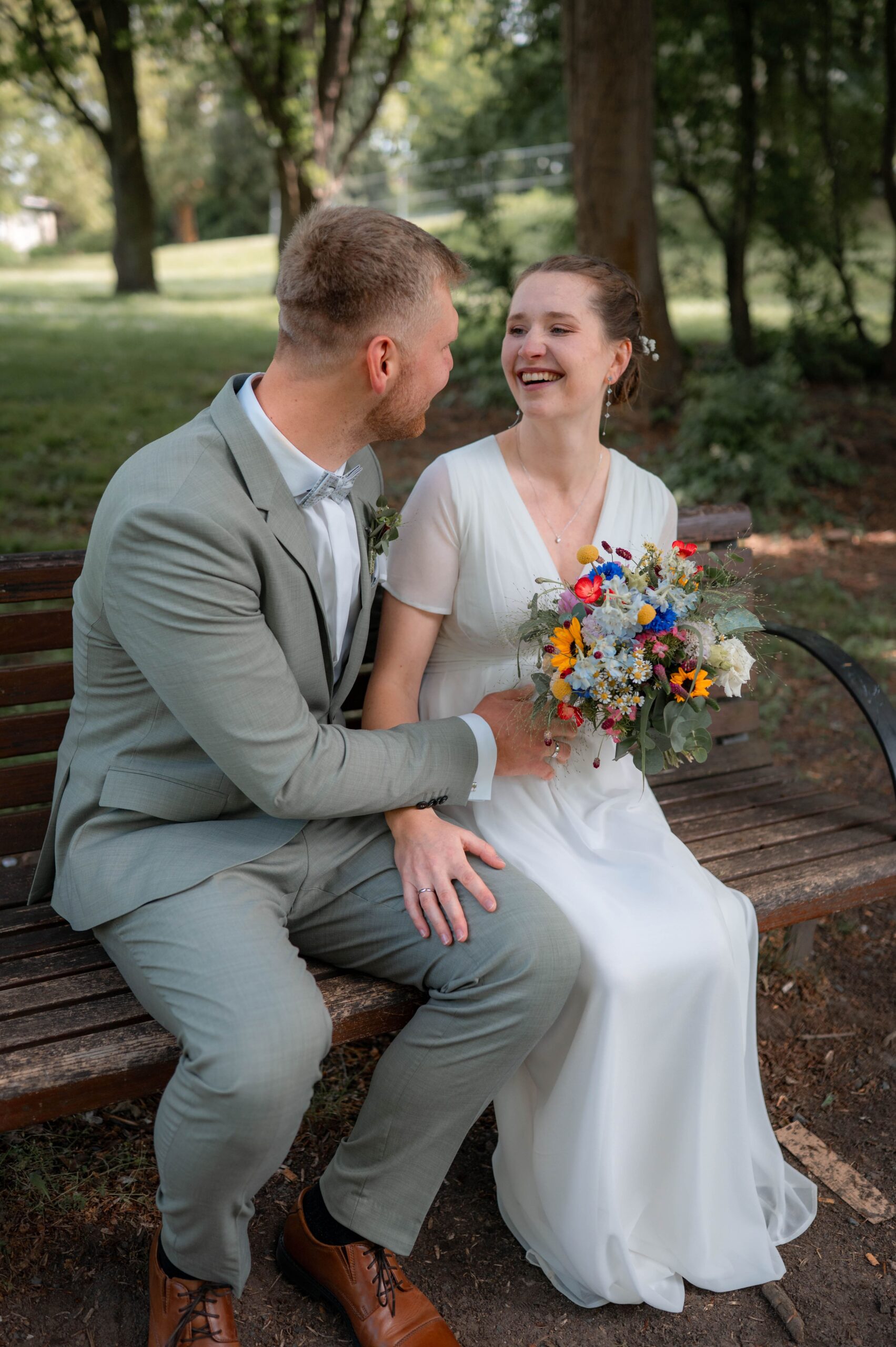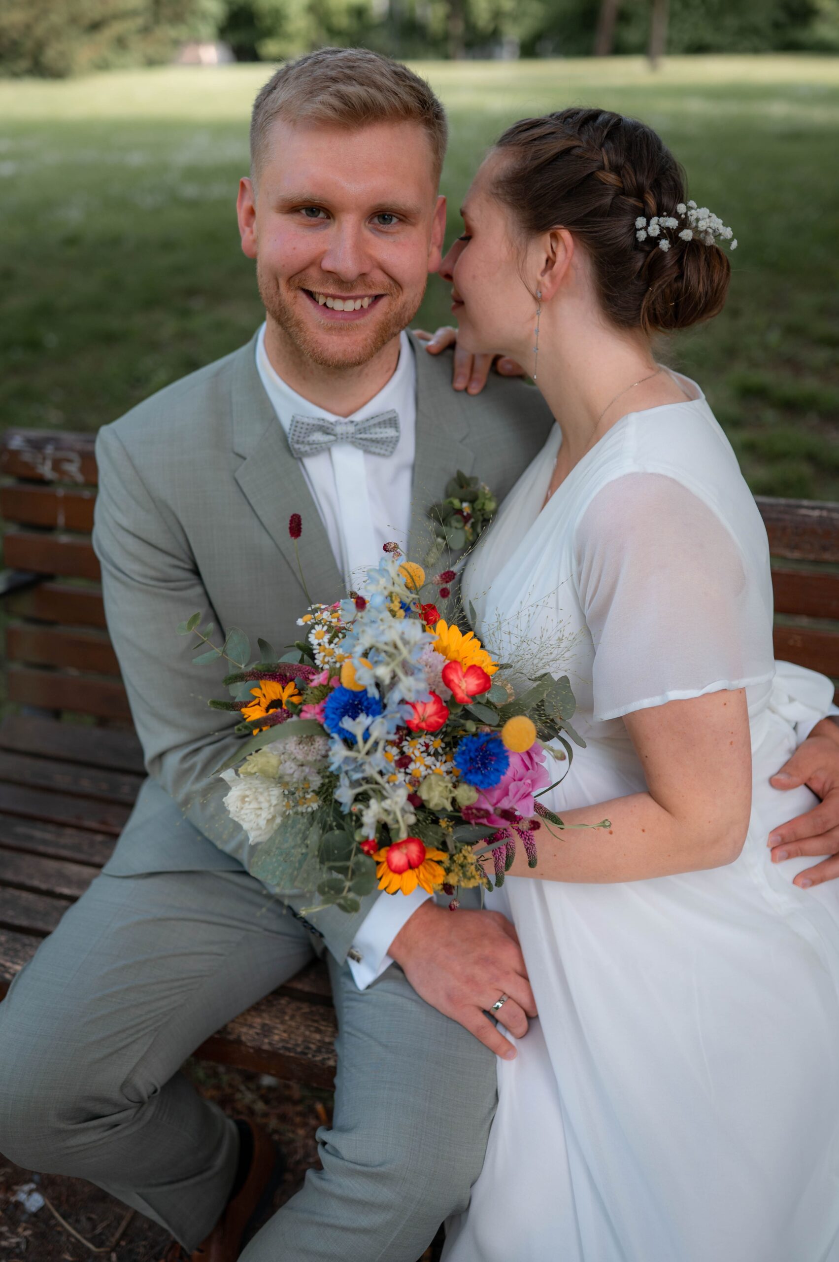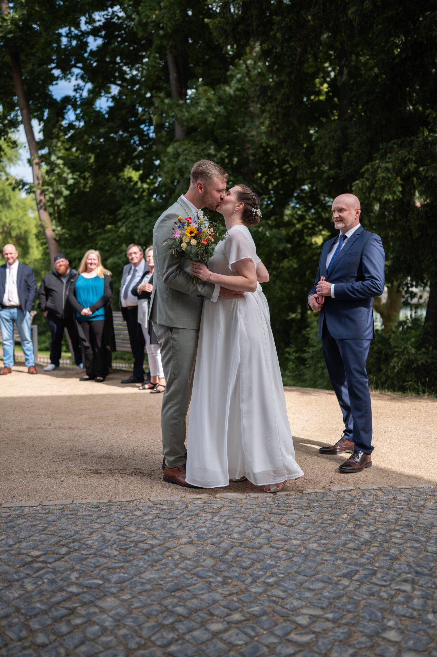 Im Anschluss gab es einen Sektempfang und als die Gäste sich schon langsam auf den Weg zur Feierlocation machen, haben wir noch ein paar Fotos im Seeliger Park gemacht.